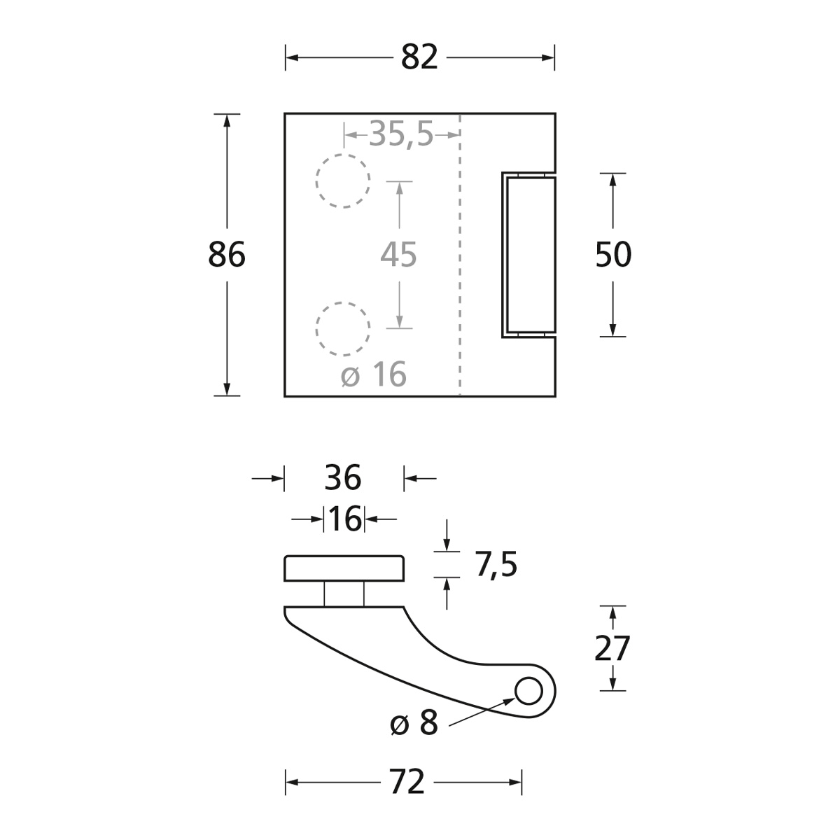 The 3-part glass door hinge in PVD titanium satin combines modern design with high stability. The elegant, matt surface ensures a stylish look, while the precise workmanship allows the door to move smoothly. Thanks to robust materials and easy installation, it is the ideal choice for elegant glass doors in residential and commercial spaces. Sold in pairs. The glass door hinge is supplied with a sleeve and a frame part for wooden frames.