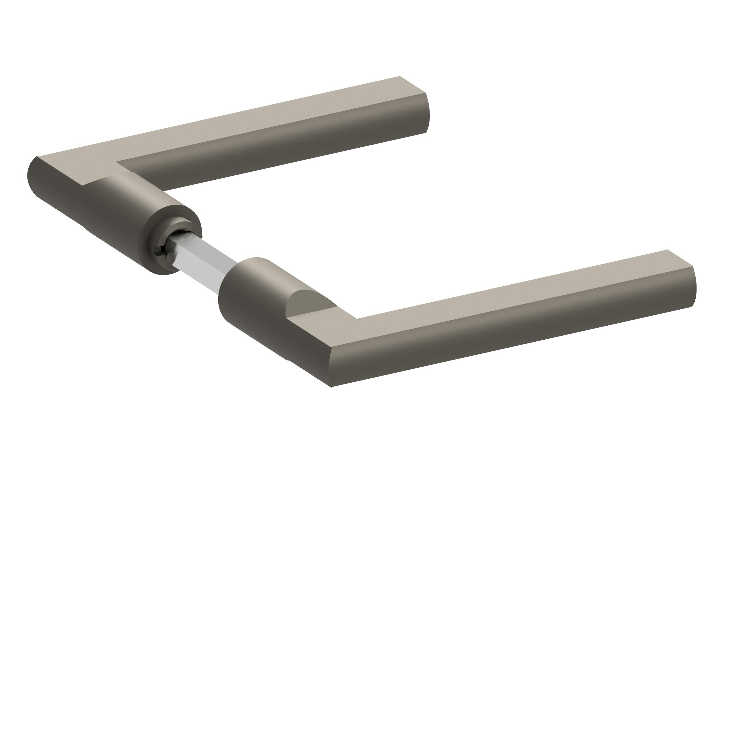 Our lever handle pair Form 1025 in PVD titanium satin is the ideal complement for glass doors and can be perfectly combined with our glass door locks. Also suitable as a handle solution for other projects.