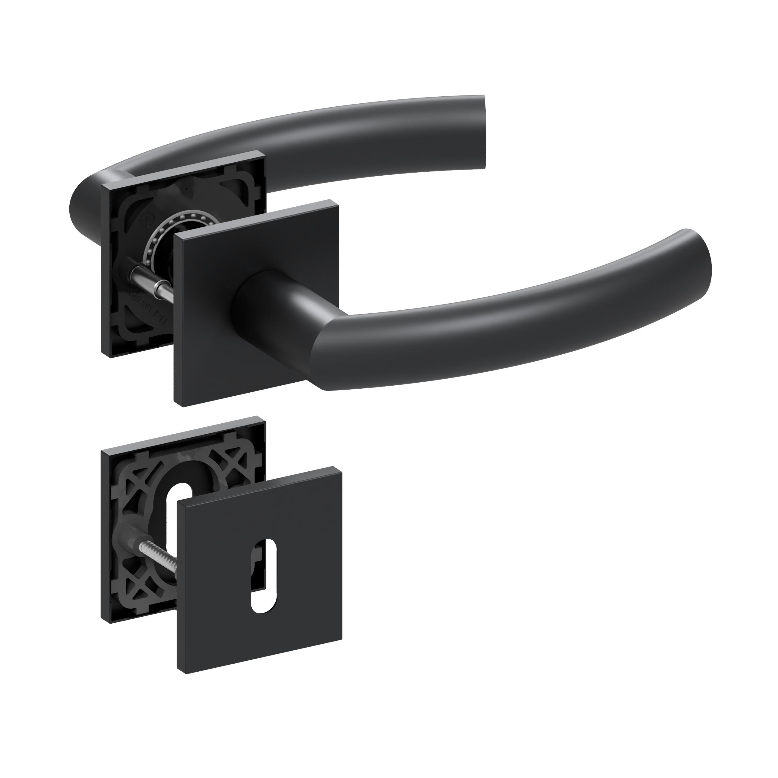 The perfect combination of style and functionality for your door! With our innovativeplain bearing technology slidebloc® made of glass fiber-reinforced polyamide or the maintenance-free ball bearing technology pullbloc® made of hardened steel, we offer you the highest quality. Our rose set is certified in accordance with DIN EN 1906, which gives you additional security. The surface in black satin gives your door a sophisticated style, while the narrow 5 mm rosettes ensure a modern appearance.