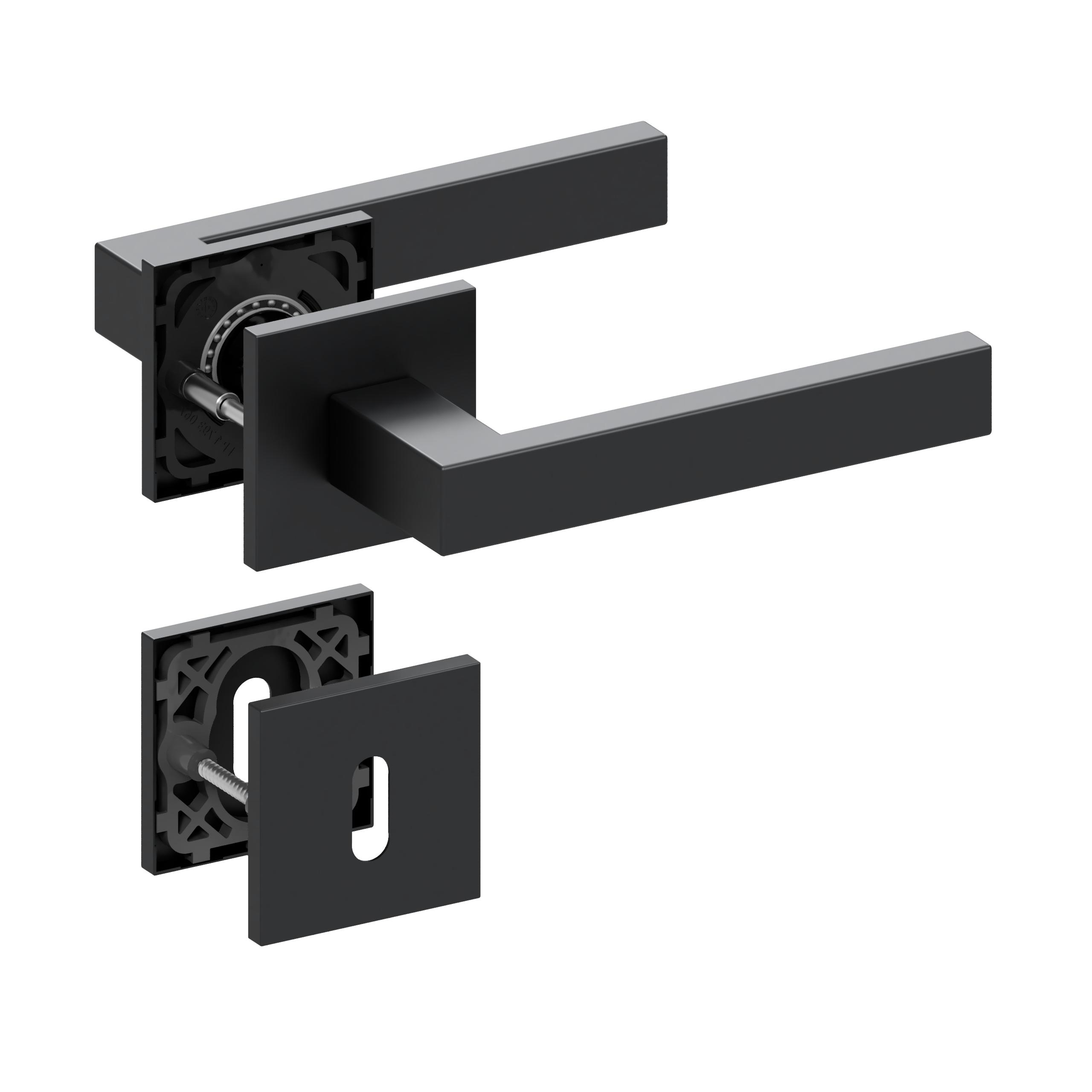 The perfect combination of style and functionality for your door! With our innovativeplain bearing technology slidebloc® made of glass fiber-reinforced polyamide or the maintenance-free ball bearing technology pullbloc® made of hardened steel, we offer you the highest quality. Our rose set is certified in accordance with DIN EN 1906, which gives you additional security. The surface in black satin gives your door a sophisticated style, while the narrow 5 mm rosettes ensure a modern appearance.