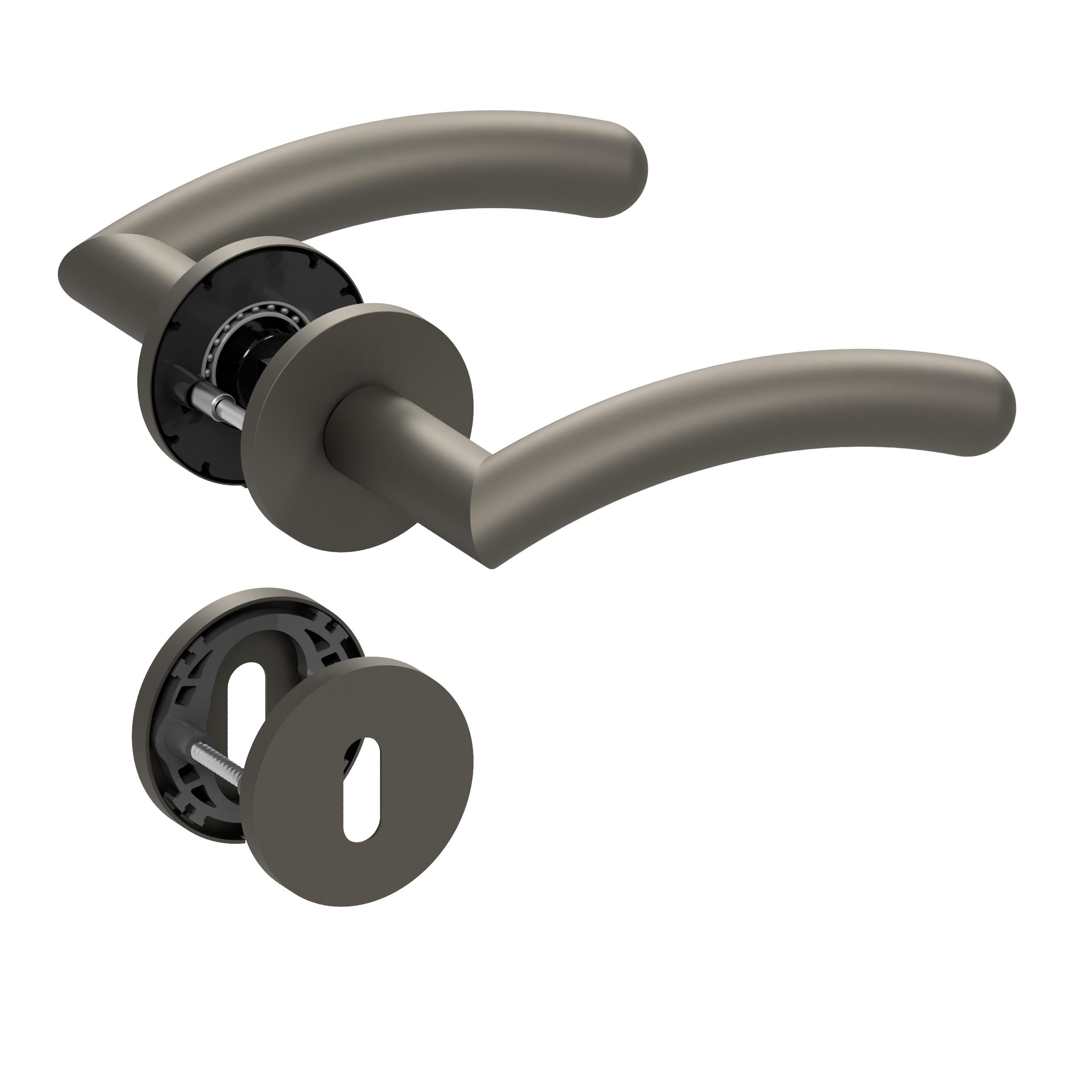 The perfect combination of style and functionality for your door! With our innovative plain bearing technology slidebloc® made of glass fiber-reinforced polyamide or the maintenance-free ball bearing technology pullbloc® made of hardened steel, we offer you the highest quality. Our rose set is certified in accordance with DIN EN 1906, which gives you additional security. The surface in titan satin gives your door a sophisticated style, while the narrow 5 mm rosettes ensure a modern appearance.