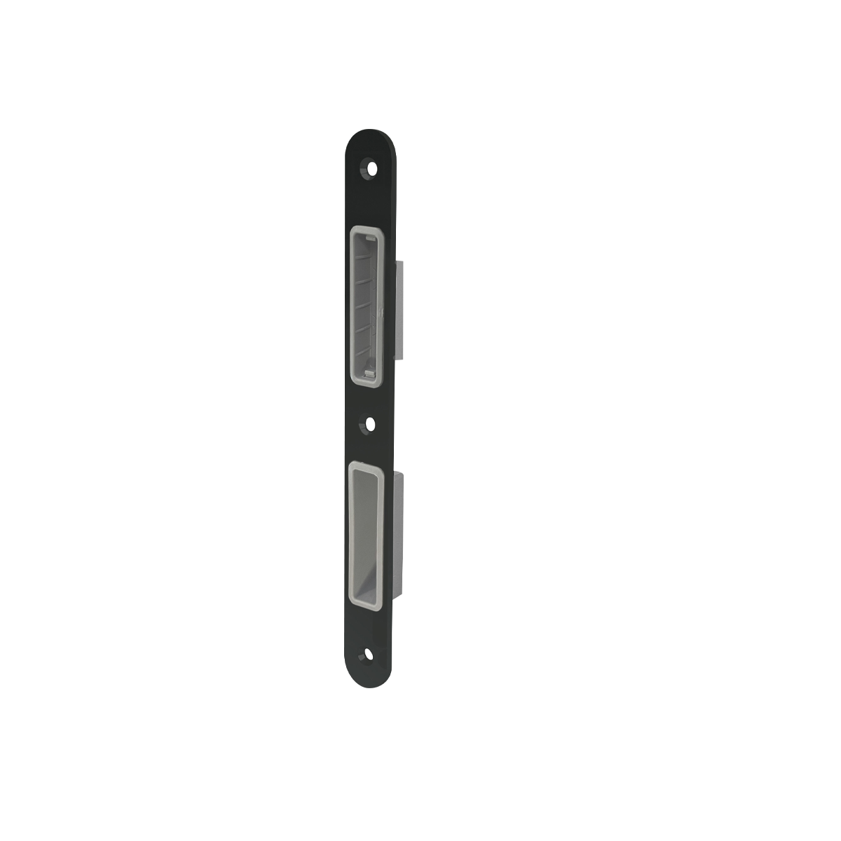 Esta cerradura empotrada sin pestillo destaca por su diseño moderno y la elegante superficie satinada en negro del embellecedor. La superficie satinada en negro del embellecedor combina a la perfección con nuestras manillas y bisagras satinadas en negro, creando así un conjunto armonioso.
