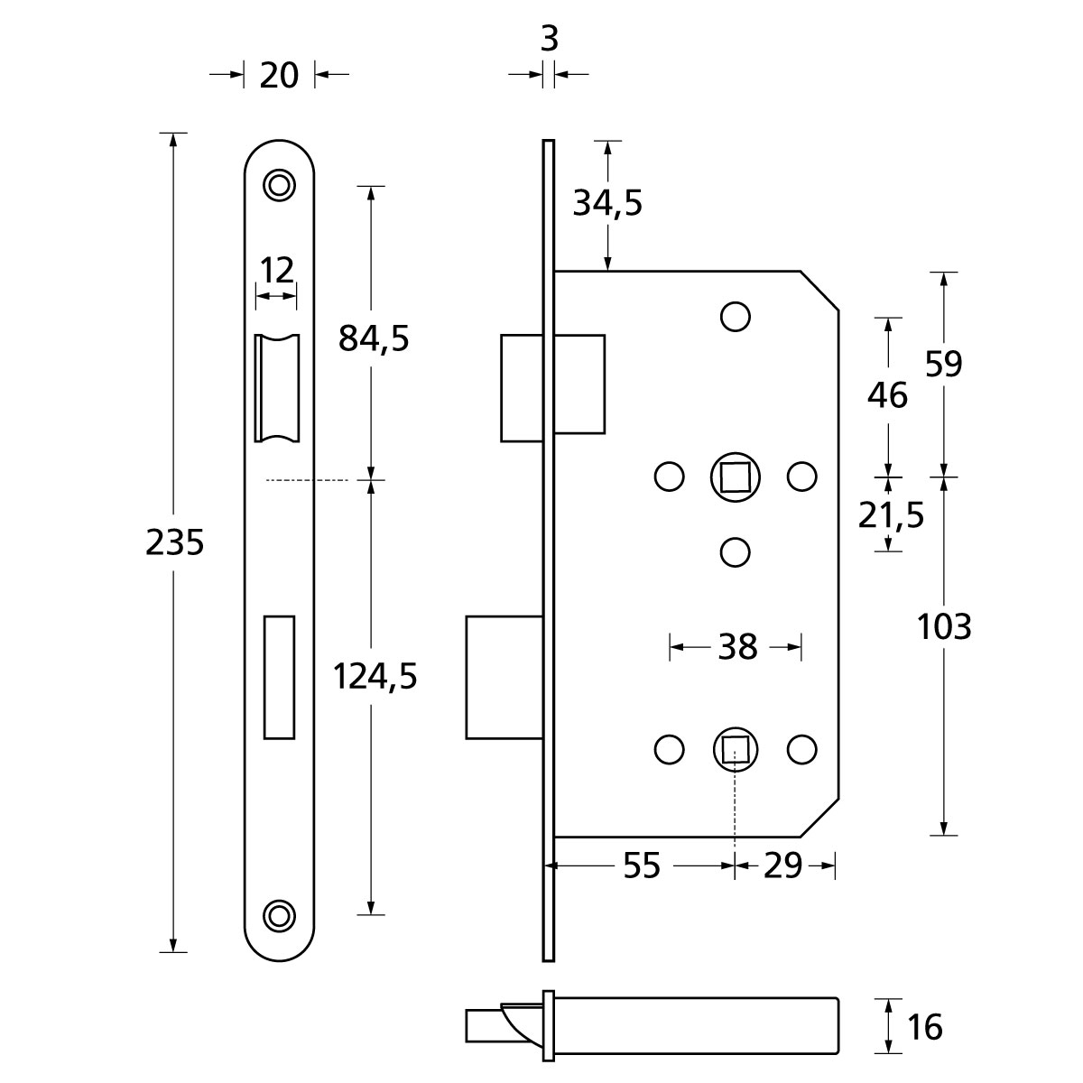 – Caja de cerradura de acero.