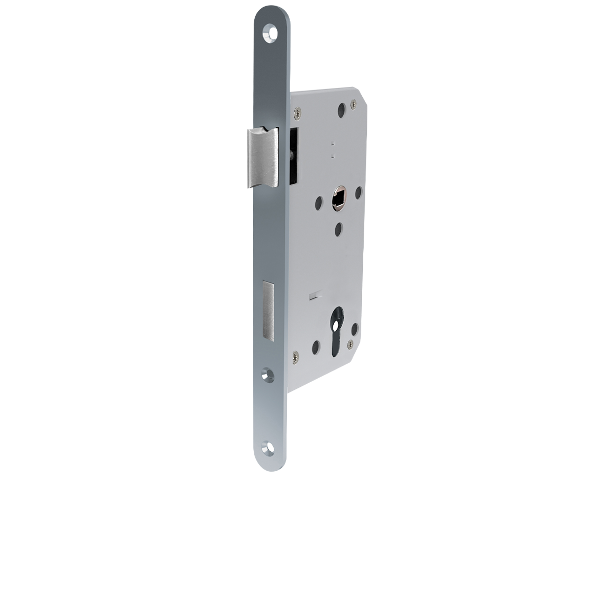 Esta cerradura de encastre para WC destaca por su diseño moderno y la elegante superficie mate de acero inoxidable de la placa. La superficie mate de acero inoxidable de la placa combina a la perfección con nuestras manillas y bisagras de acero inoxidable mate, creando así un conjunto armonioso.