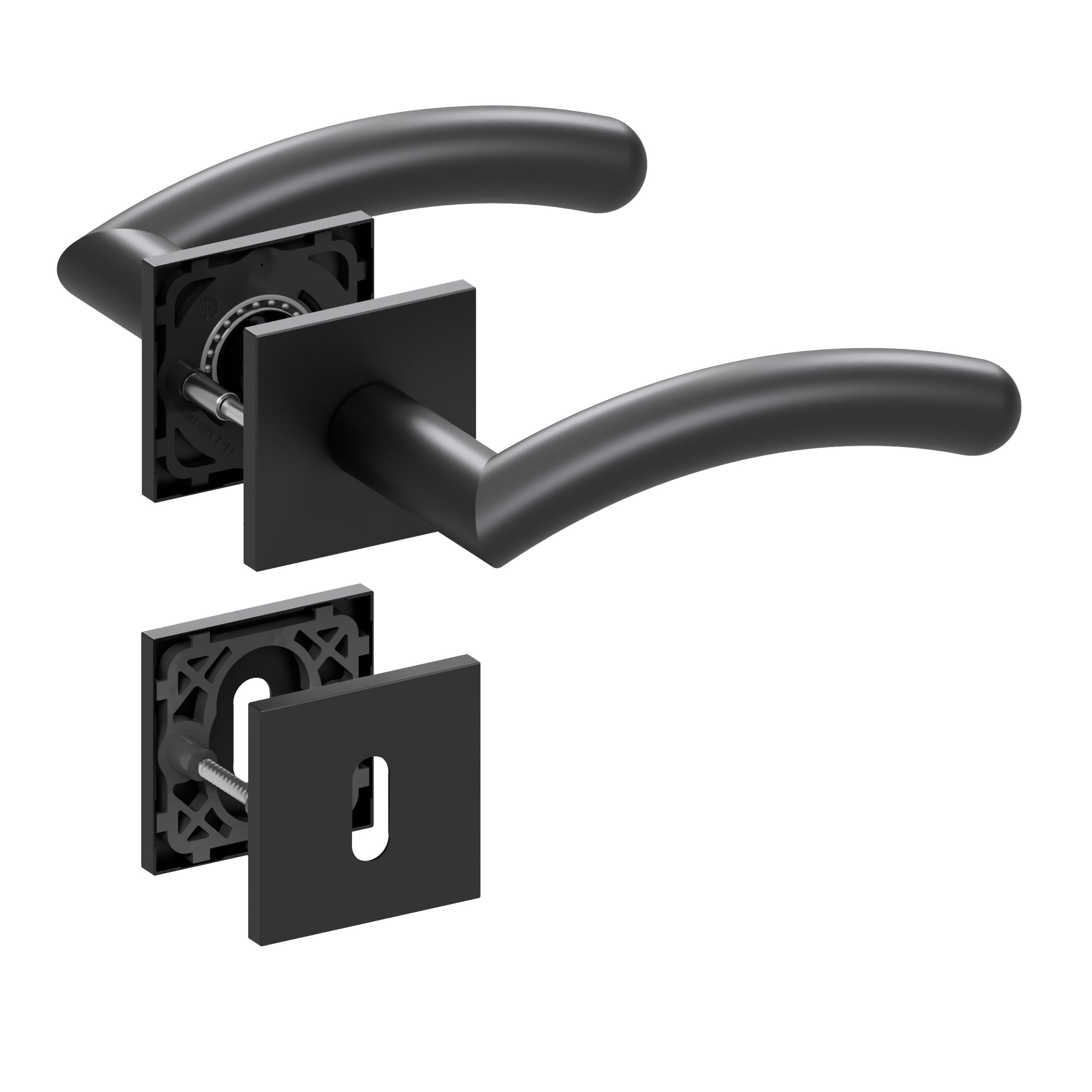 ¡La combinación perfecta de estilo y funcionalidad para tu puerta! Con nuestra innovadora tecnología de cojinetes deslizantes slidebloc® de poliamida reforzada con fibra de vidrio o la tecnología de cojinetes de bolas pullbloc® de acero endurecido, que no requiere mantenimiento, te ofrecemos la máxima calidad. Nuestro juego de rosetas está certificado según la norma DIN EN 1906, lo que te proporciona una seguridad adicional. La superficie en negro satinado le da a tu puerta un estilo elegante, mientras que las rosetas estrechas de 5 mm le dan un aspecto moderno.