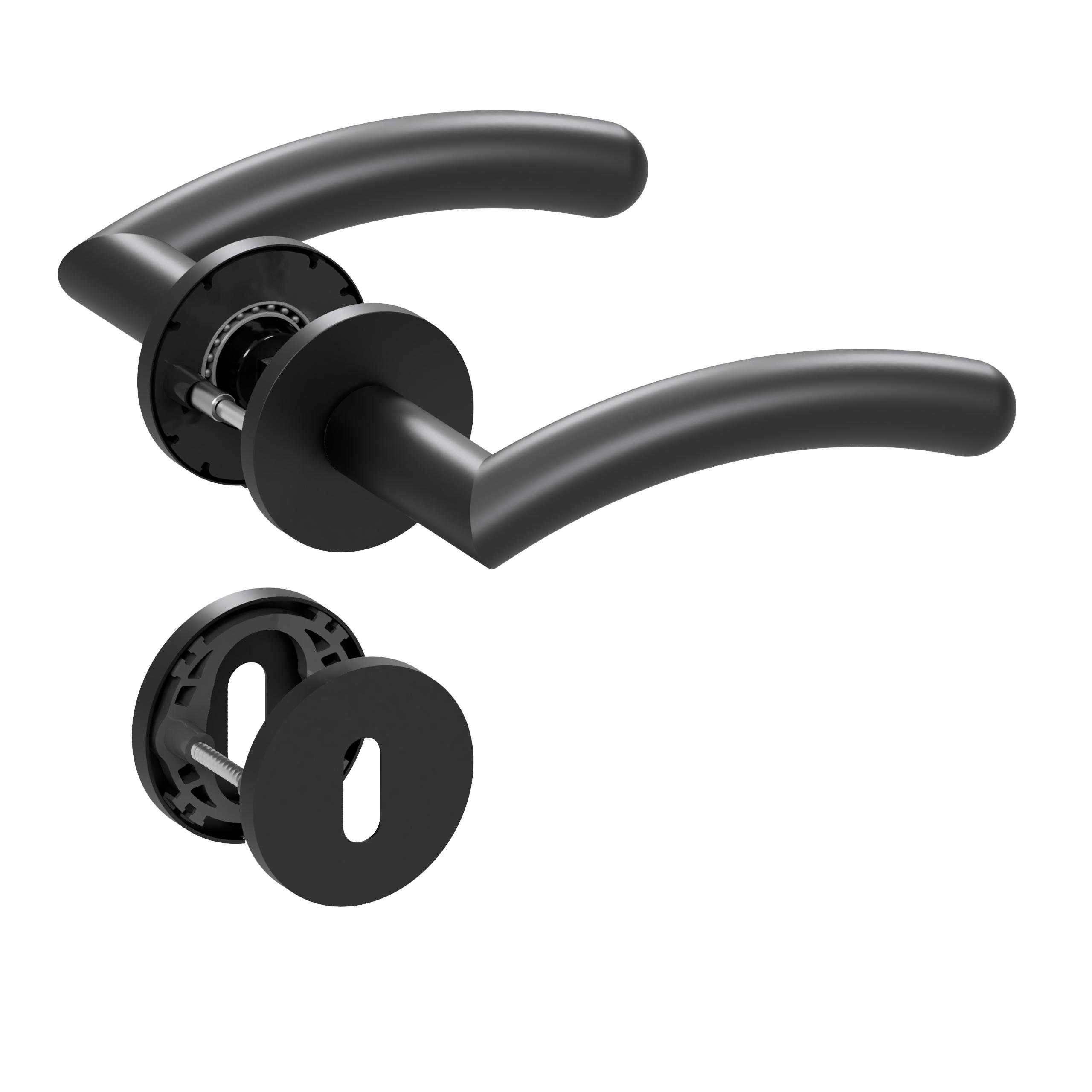 ¡La combinación perfecta de estilo y funcionalidad para tu puerta! Con nuestra innovadora tecnología de cojinetes deslizantes slidebloc® de poliamida reforzada con fibra de vidrio o la tecnología de cojinetes de bolas pullbloc® de acero endurecido, que no requiere mantenimiento, te ofrecemos la máxima calidad. Nuestro juego de rosetas está certificado según la norma DIN EN 1906, lo que te proporciona una seguridad adicional. La superficie en negro satinado le da a tu puerta un estilo elegante, mientras que las rosetas estrechas de 5 mm le dan un aspecto moderno.