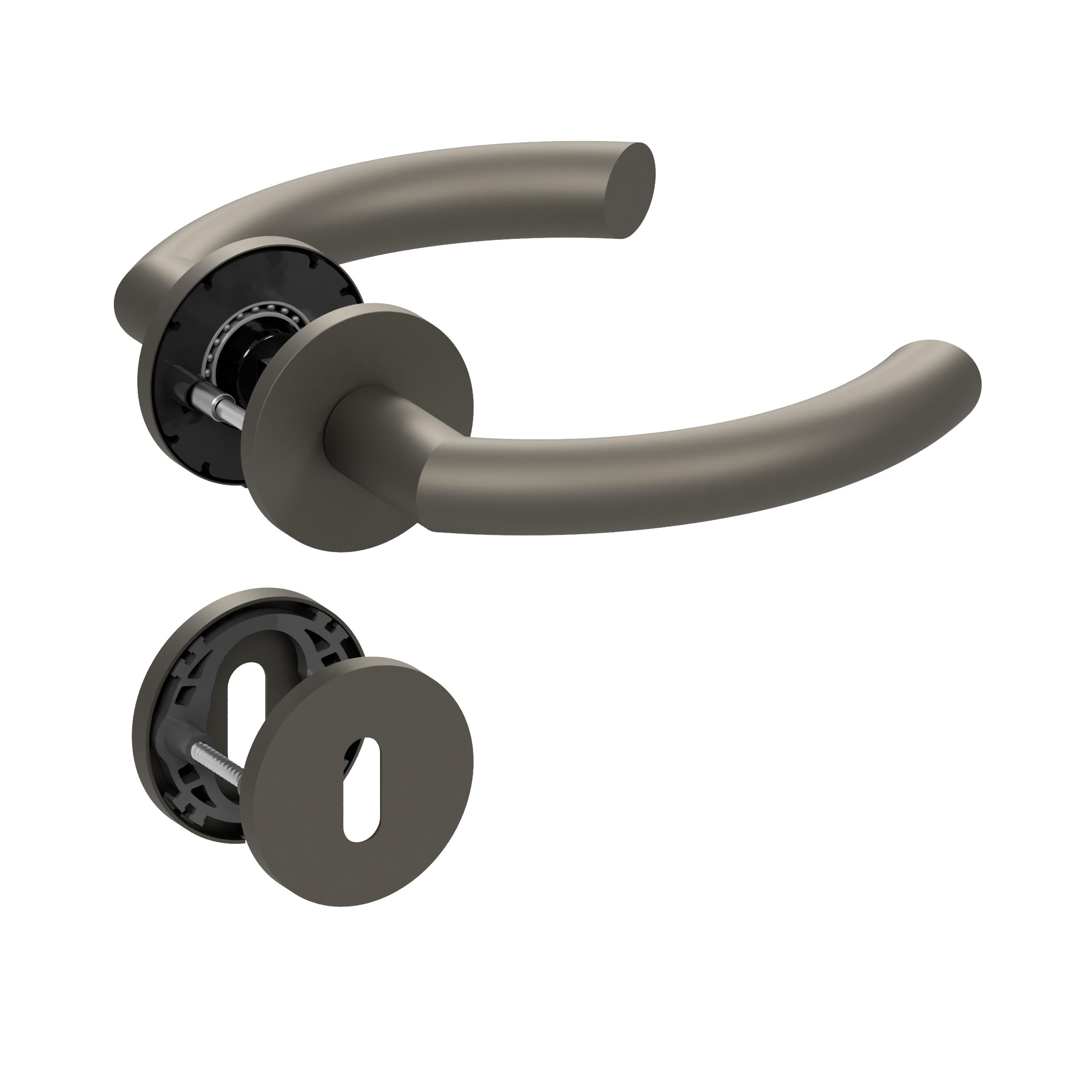 ¡La combinación perfecta de estilo y funcionalidad para tu puerta! Con nuestra innovadora tecnología de cojinetes deslizantes slidebloc® de poliamida reforzada con fibra de vidrio o la tecnología de cojinetes de bolas pullbloc® de acero endurecido, que no requiere mantenimiento, te ofrecemos la máxima calidad. Nuestro juego de rosetas está certificado según la norma DIN EN 1906, lo que te proporciona una seguridad adicional. La superficie en titanio satinado PVD le da a tu puerta un estilo elegante, mientras que las rosetas estrechas de 5 mm le dan un aspecto moderno.