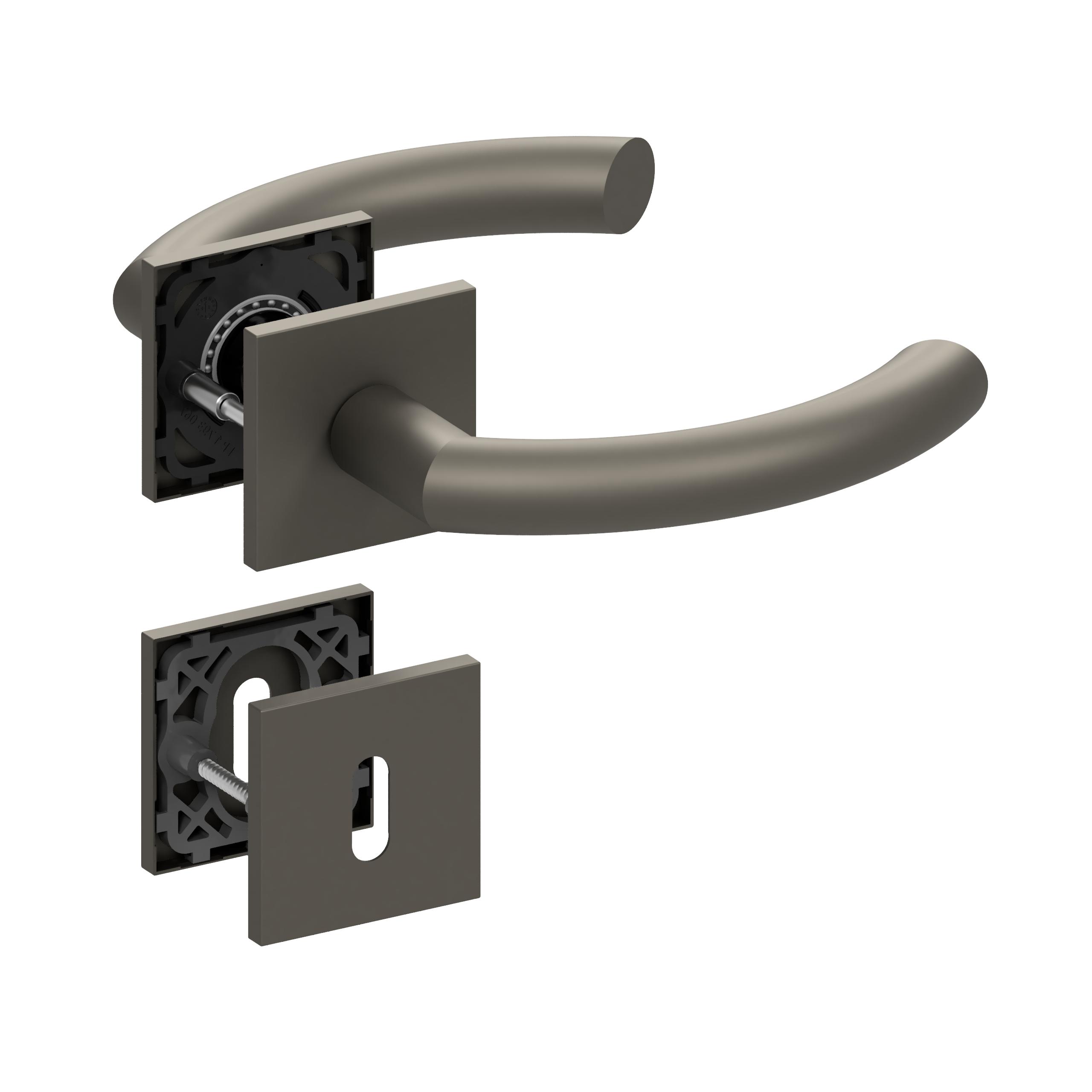 ¡La combinación perfecta de estilo y funcionalidad para tu puerta! Con nuestra innovadora tecnología de cojinetes deslizantes slidebloc® de poliamida reforzada con fibra de vidrio o la tecnología de cojinetes de bolas pullbloc® de acero endurecido, que no requiere mantenimiento, te ofrecemos la máxima calidad. Nuestro juego de rosetas está certificado según la norma DIN EN 1906, lo que te proporciona una seguridad adicional. La superficie en titanio satinado PVD le da a tu puerta un estilo elegante, mientras que las rosetas estrechas de 5 mm le dan un aspecto moderno.