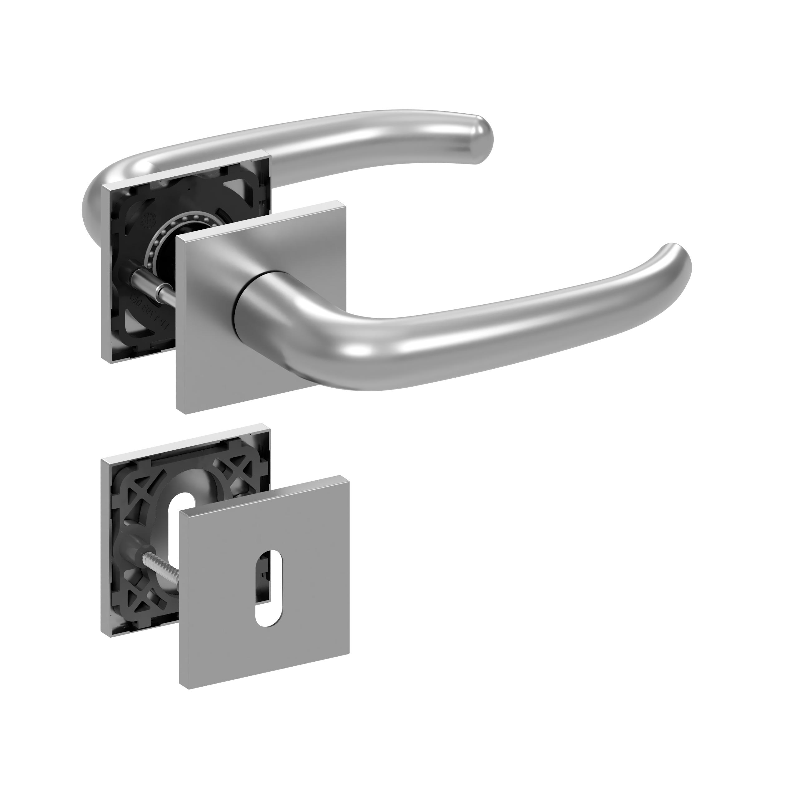 ¡La combinación perfecta de estilo y funcionalidad para tu puerta! Con nuestra innovadora tecnología de cojinetes deslizantes slidebloc® de poliamida reforzada con fibra de vidrio o la tecnología de cojinetes de bolas pullbloc® de acero endurecido, que no requiere mantenimiento, te ofrecemos la máxima calidad. Nuestro juego de rosetas está certificado según la norma DIN EN 1906, lo que te proporciona una seguridad adicional. La superficie en acero inoxidable mate le da a tu puerta un estilo elegante, mientras que las rosetas estrechas de 5 mm le dan un aspecto moderno.