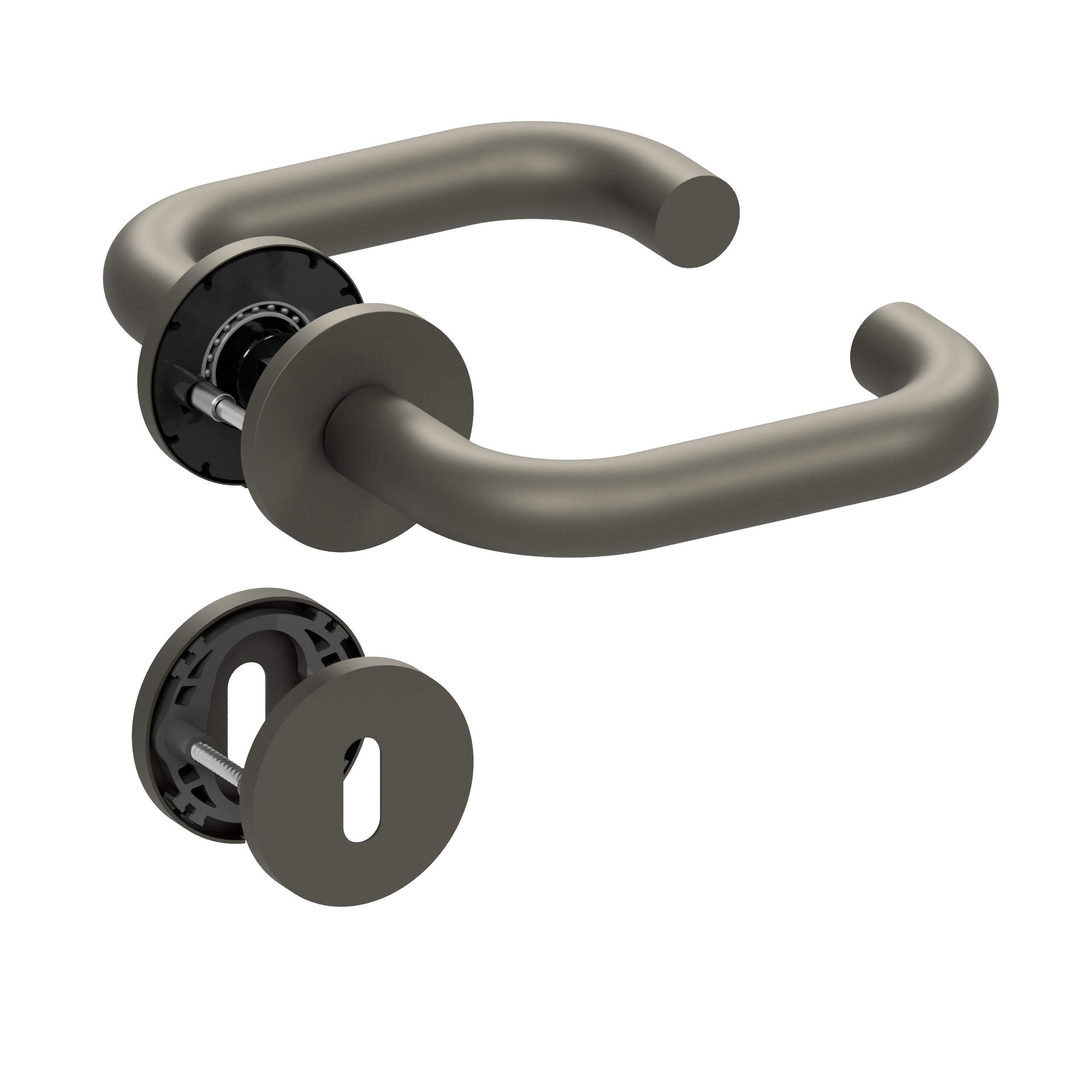 ¡La combinación perfecta de estilo y funcionalidad para tu puerta! Con nuestra innovadora tecnología de cojinetes deslizantes slidebloc® de poliamida reforzada con fibra de vidrio o la tecnología de cojinetes de bolas pullbloc® de acero endurecido, que no requiere mantenimiento, te ofrecemos la máxima calidad. Nuestro juego de rosetas está certificado según la norma DIN EN 1906, lo que te proporciona una seguridad adicional. La superficie en titanio satinado PVD le da a tu puerta un estilo elegante, mientras que las rosetas estrechas de 5 mm le dan un aspecto moderno.