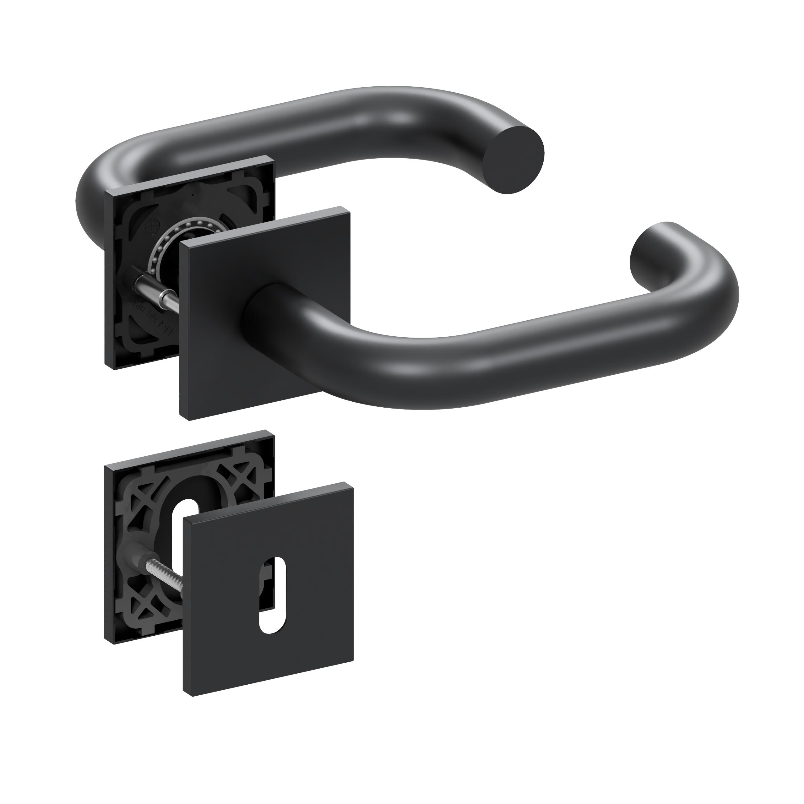¡La combinación perfecta de estilo y funcionalidad para tu puerta! Con nuestra innovadora tecnología de cojinetes deslizantes slidebloc® de poliamida reforzada con fibra de vidrio o la tecnología de cojinetes de bolas pullbloc® de acero endurecido, que no requiere mantenimiento, te ofrecemos la máxima calidad. Nuestro juego de rosetas está certificado según la norma DIN EN 1906, lo que te proporciona una seguridad adicional. La superficie en negro satinado le da a tu puerta un estilo elegante, mientras que las rosetas estrechas de 5 mm le dan un aspecto moderno.