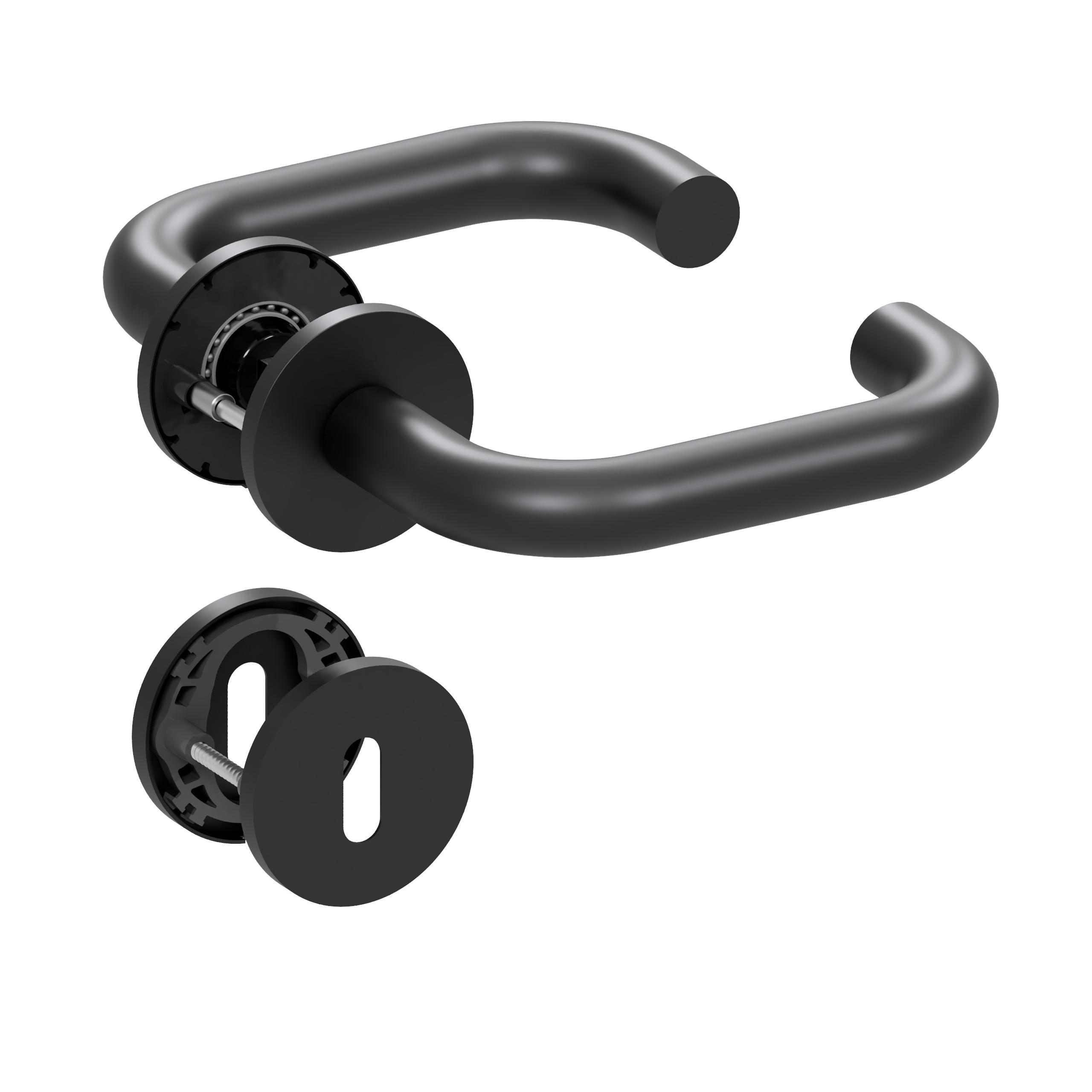 ¡La combinación perfecta de estilo y funcionalidad para tu puerta! Con nuestra innovadora tecnología de cojinetes deslizantes slidebloc® de poliamida reforzada con fibra de vidrio o la tecnología de cojinetes de bolas pullbloc® de acero endurecido, que no requiere mantenimiento, te ofrecemos la máxima calidad. Nuestro juego de rosetas está certificado según la norma DIN EN 1906, lo que te proporciona una seguridad adicional. La superficie en negro satinado le da a tu puerta un estilo elegante, mientras que las rosetas estrechas de 5 mm le dan un aspecto moderno.