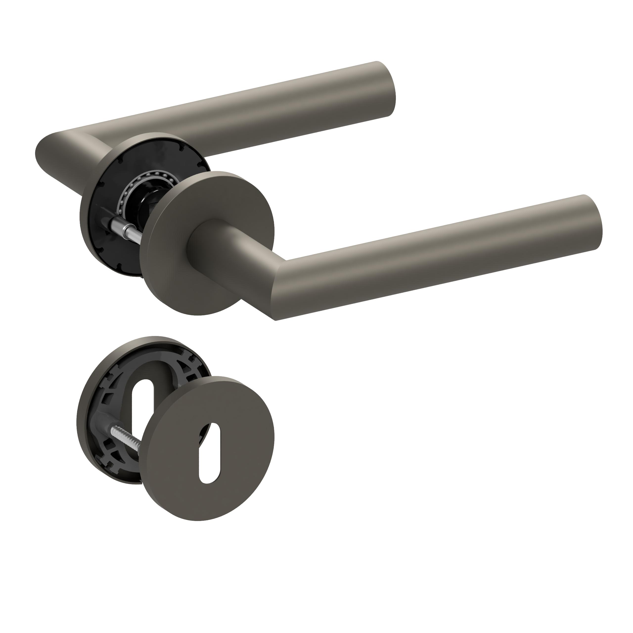 ¡La combinación perfecta de estilo y funcionalidad para tu puerta! Con nuestra innovadora tecnología de cojinetes deslizantes slidebloc® de poliamida reforzada con fibra de vidrio o la tecnología de cojinetes de bolas pullbloc® de acero endurecido, que no requiere mantenimiento, te ofrecemos la máxima calidad. Nuestro juego de rosetas está certificado según la norma DIN EN 1906, lo que te proporciona una seguridad adicional. La superficie en titanio satinado PVD le da a tu puerta un estilo elegante, mientras que las rosetas estrechas de 5 mm le dan un aspecto moderno. Nuestro juego WC OS no necesita rosetas con llave, simplemente tirando y presionando la manija puedes cerrar y abrir fácilmente la puerta de tu baño o aseo.
