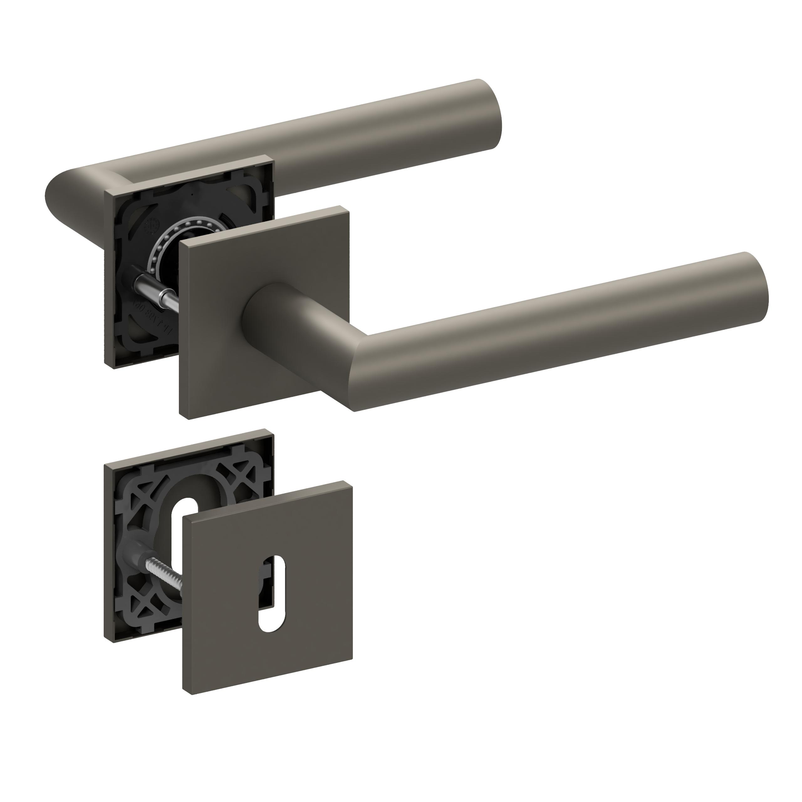 ¡La combinación perfecta de estilo y funcionalidad para tu puerta! Con nuestra innovadora tecnología de cojinetes deslizantes slidebloc® de poliamida reforzada con fibra de vidrio o la tecnología de cojinetes de bolas pullbloc® de acero endurecido, que no requiere mantenimiento, te ofrecemos la máxima calidad. Nuestro juego de rosetas está certificado según la norma DIN EN 1906, lo que te proporciona una seguridad adicional. La superficie en titanio satinado PVD le da a tu puerta un estilo elegante, mientras que las rosetas estrechas de 5 mm le dan un aspecto moderno.