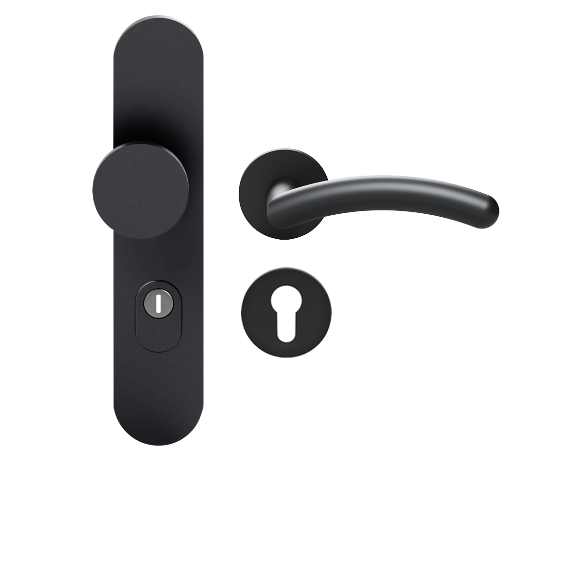 ¡Dale a tu puerta un aspecto elegante sin comprometer la seguridad! Nuestro herraje de protección de alta calidad combina un diseño moderno con una tecnología innovadora. Con un grosor de placa de solo 8,5 mm, se integra de forma discreta y elegante en cualquier puerta y combina a la perfección con nuestros herrajes para puertas.