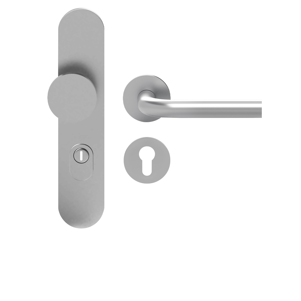 ¡Dale a tu puerta un aspecto elegante sin comprometer la seguridad! Nuestro herraje de protección de alta calidad combina un diseño moderno con una tecnología innovadora. Con un grosor de placa de solo 8,5 mm, se integra de forma discreta y elegante en cualquier puerta y combina a la perfección con nuestros herrajes para puertas.