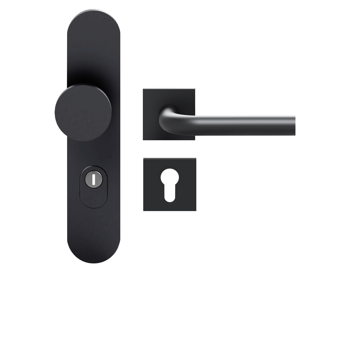 ¡Dale a tu puerta un aspecto elegante sin comprometer la seguridad! Nuestro herraje de protección de alta calidad combina un diseño moderno con una tecnología innovadora. Con un grosor de placa de solo 8,5 mm, se integra de forma discreta y elegante en cualquier puerta y combina a la perfección con nuestros herrajes para puertas.