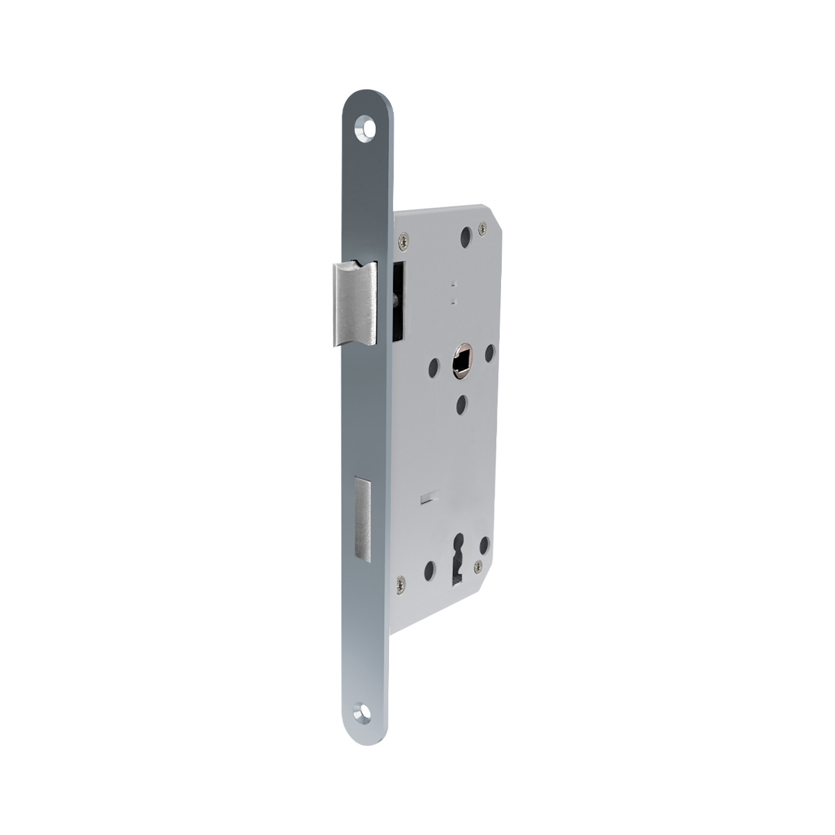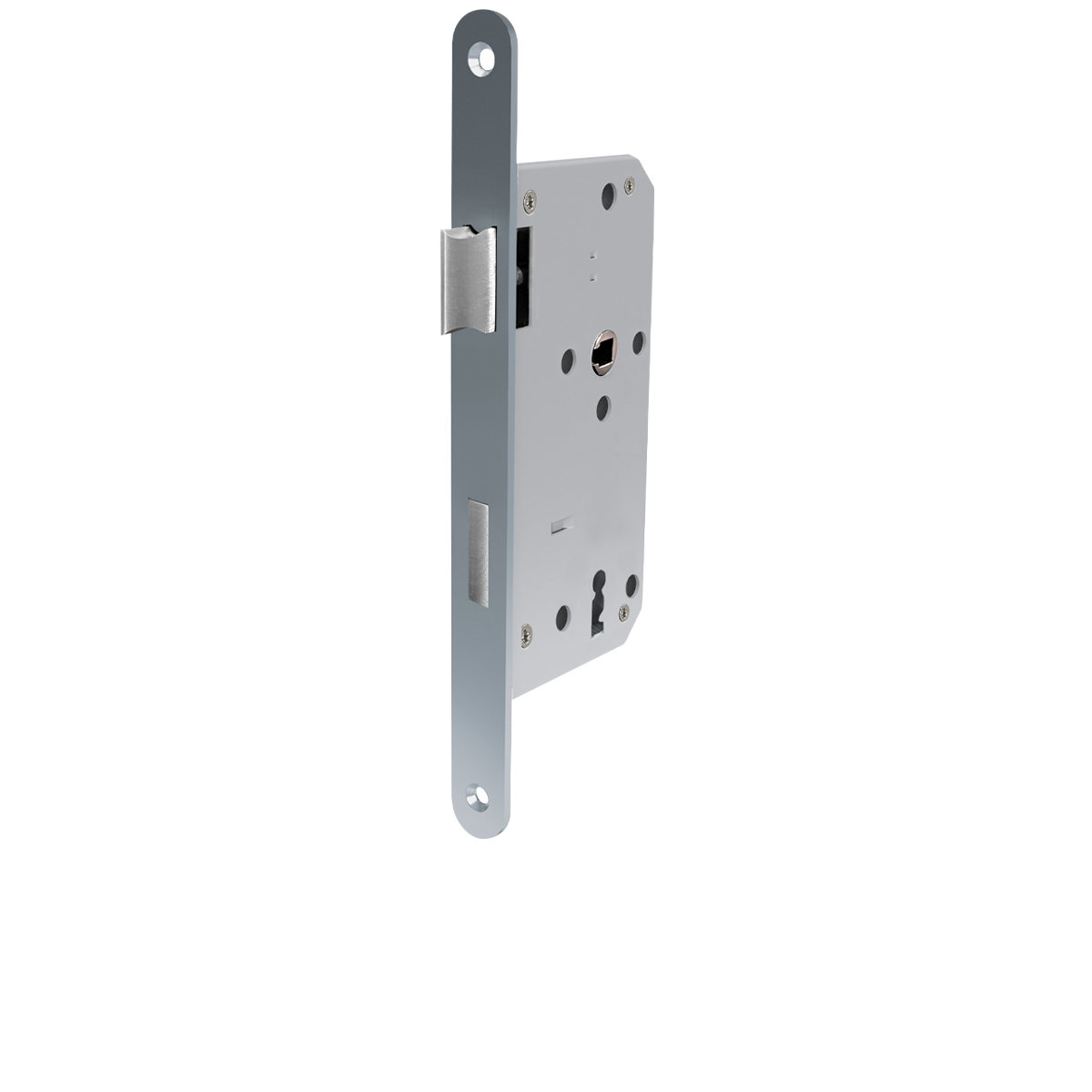 Esta fechadura de encaixe BB impressiona pelo seu design moderno e pela elegante superfície mate em aço inoxidável na placa. A superfície mate em aço inoxidável da placa complementa na perfeição as nossas maçanetas e dobradiças em aço inoxidável mate, garantindo assim um visual harmonioso.